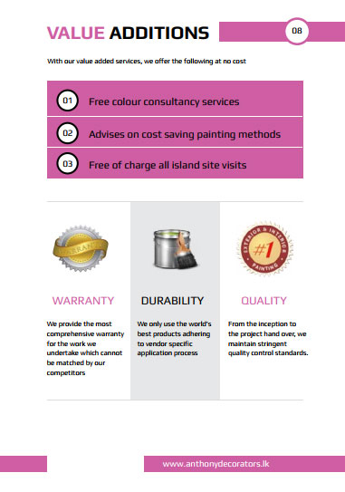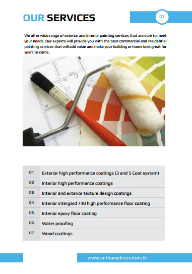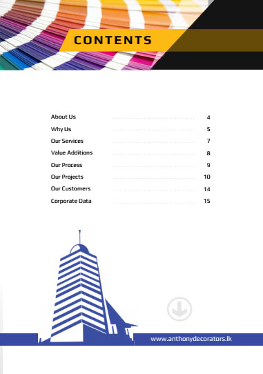 Anthony decorators came to us to get a corporate profile done. This is some sample pages from the final profile sent to print. The profile accompanied with a digital format as well. View some of the pages in the profile below.